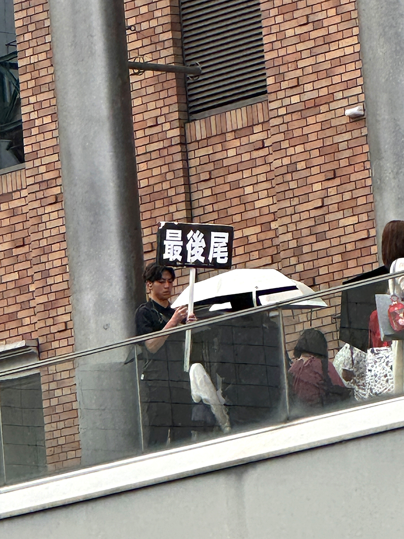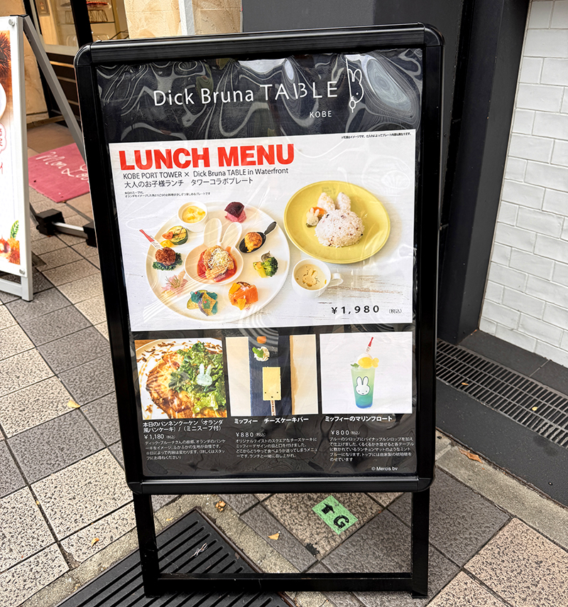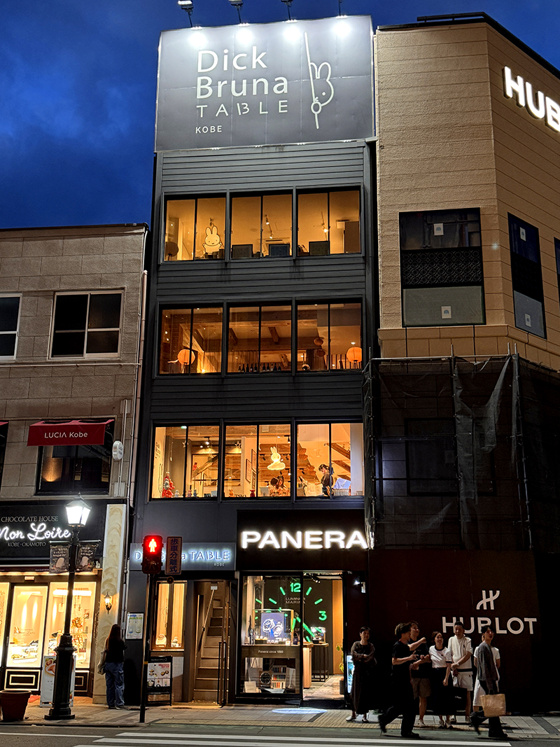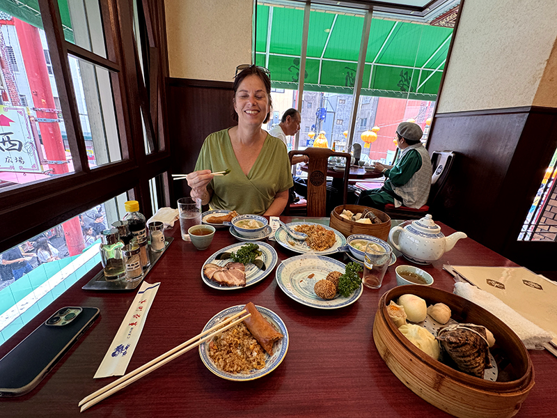 Na een uur komen we in Kobe aan. We lopen door een vriendelijke winkelstraat en hoppen even bij de Starbucks naar binnen voor koffie. Geen overbodige luxe om even wat caffeine binnen te krijgen ivm het tijdsverschil en de korte nacht in het vliegtuig. Binnen roepen de werknemers naar elke klant ‘Ko-ni-chi-waaaa’ (goedemiddag). Later hoor ik ook ‘A-ri-gatoooo’ (bedankt), ze rekken hier alles lekker uit! Het is 1 uur ‘s middags en we moeten nog 2 uur stukslaan, voordat we kunnen inchecken dus prima om hier buiten op een terrasje een beetje te kijken naar de Japanners die voorbij lopen. We zien eigenlijk geen toeristen, heel opmerkelijk. Ook in Chinatown, waar we doorheen lopen als we onze bagage hebben afgegeven bij de receptie van het hotel, zien we vooral Japanners. We lopen door smalle straatjes VOL eettentjes. We hebben ons laten vertellen dat Japanners niet lopend eten op straat, nou hier wel hoor. Van alles gaat er in, van zoet tot hartig. Bij sommige tentjes staan enorme rijen. Toen we koffie zaten te drinken, zagen we ook al een enorm lange rij van alleen maar vrouwen. Toen daar beweging in kwam, sloot een jongen achteraan in de rij met een bordje ‘De laatste staart’, volgens iTranslate dan, wat waarschijnlijk zoiets betekent als ‘einde van de rij’. Naast ons hotel blijkt trouwens een museum te zitten waar gisteren een grote tentoonstelling van Van Gogh is begonnen, met veel werken uit het Kröller-Müller museum! Ook hier een enorme rij. En we lopen onderweg ook tegen het Dick Bruna restaurant aan, waar je een soort Bento box kunt eten met Nijntjes van rijst gemaakt haha!