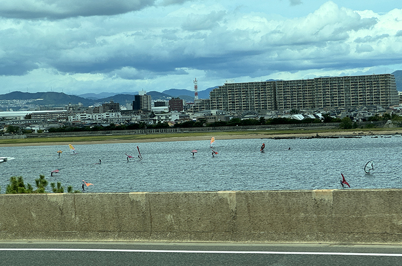 - Heel veel wingers en windsurfers langs de weg naar Kobe.